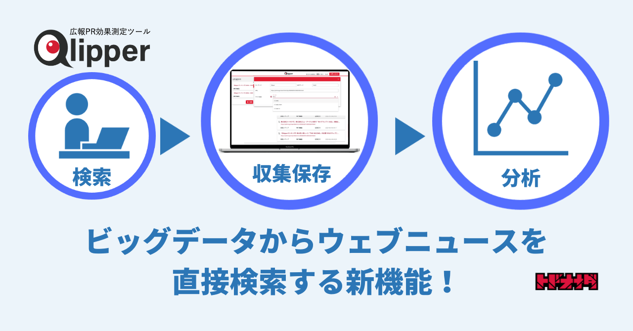 国内4,000サイトのニュース記事からなるQlipperのビッグデータから直接検索が可能に。無料体験を期間限定で開始!