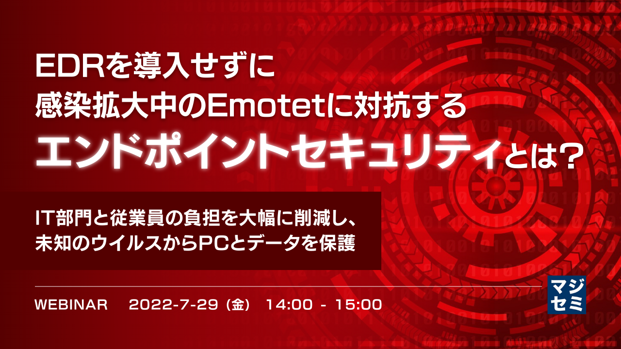Emotet等のマルウェアへの対策として、持続可能なエンドポイントセキュリティをお探しの方は是非ご参加ください。