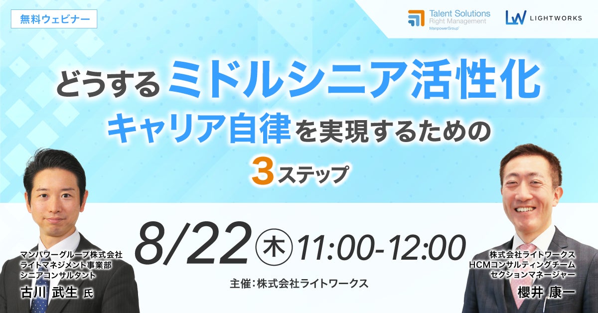 【8月22日無料ウェビナー】マンパワーグループ×ライトワークス共催「どうする『ミドルシニア活性化』キャリア自律を実現するための3ステップ」