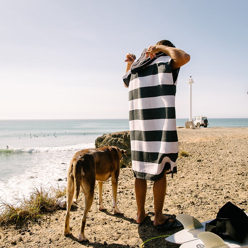 The Nomadix Towelと同じ素材で作られたプルオーバータイプのポンチョ。吸水力と速乾性に優れているため、濡れた身体の上からすっぽりと着るだけで、寒さ対策にもなります。モデル名の通り、ビーチでの着替えに大活躍!