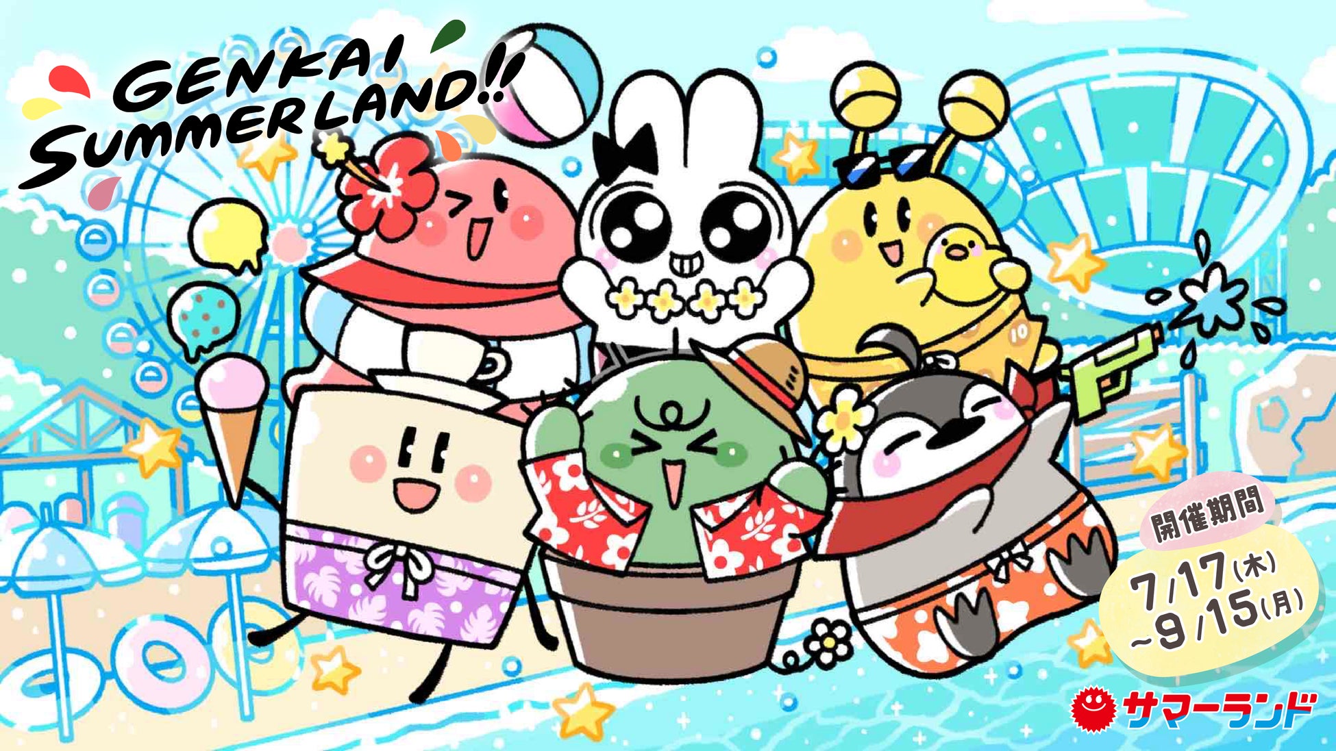 株式会社東京サマーランド(東京都あきる野市、代表取締役社長 折戸 一義)は、2025年7月17日(木)から9月15日(月祝)までの期間、ゲーム配信者6人集団「限界メンバー」とのコラボイベント「限界×サマーランド」を開催いたします。