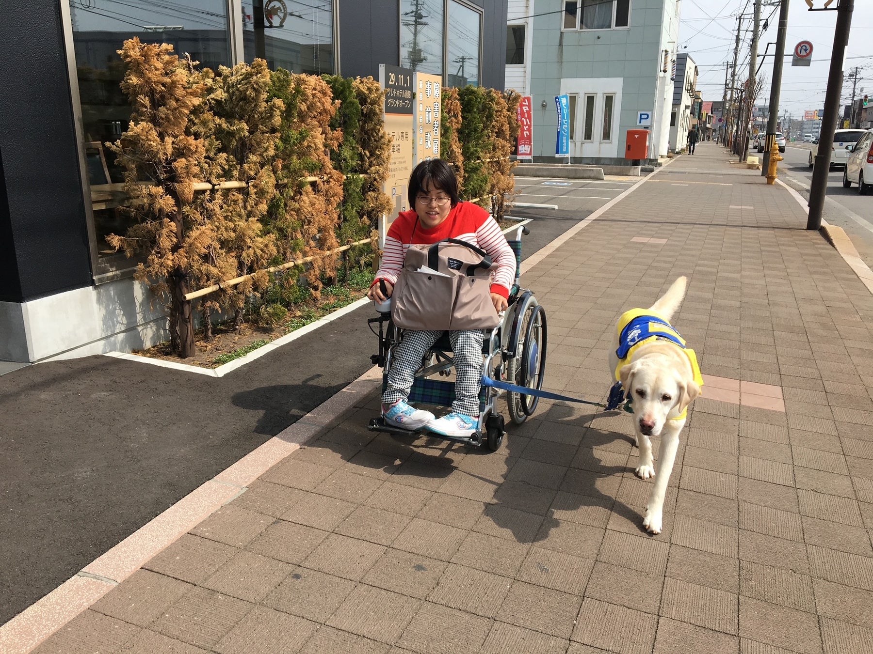 ホビットと生活をするまでは引きこもりがちだったという田畑さんですが、ホビットがいつもそばにいる安心感により自信がつき、一人で外出ができるようになり、念願だった就職も叶い、大きな変化を感じています。普段ホビットは田畑さんとともに行動し、落としたものを拾う、靴を脱がせるなどの介助作業をしています。身体障害者補助犬法のもと、介助犬は飲食店や公共交通機関など不特定多数の方が利用する施設などには同伴が認められています。ホビットも田畑さんとともに飛行機に乗ったり、ホテルに宿泊するなどいつも一緒にいました。