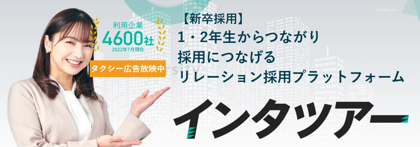 事業内容:インタビューから始まるリレーションシップ採用プラットフォーム「インタツアー」を展開。学生と企業の新しいタイミングで新しいつながり方の採用マーケティング機能で新卒採用支援を行っている。