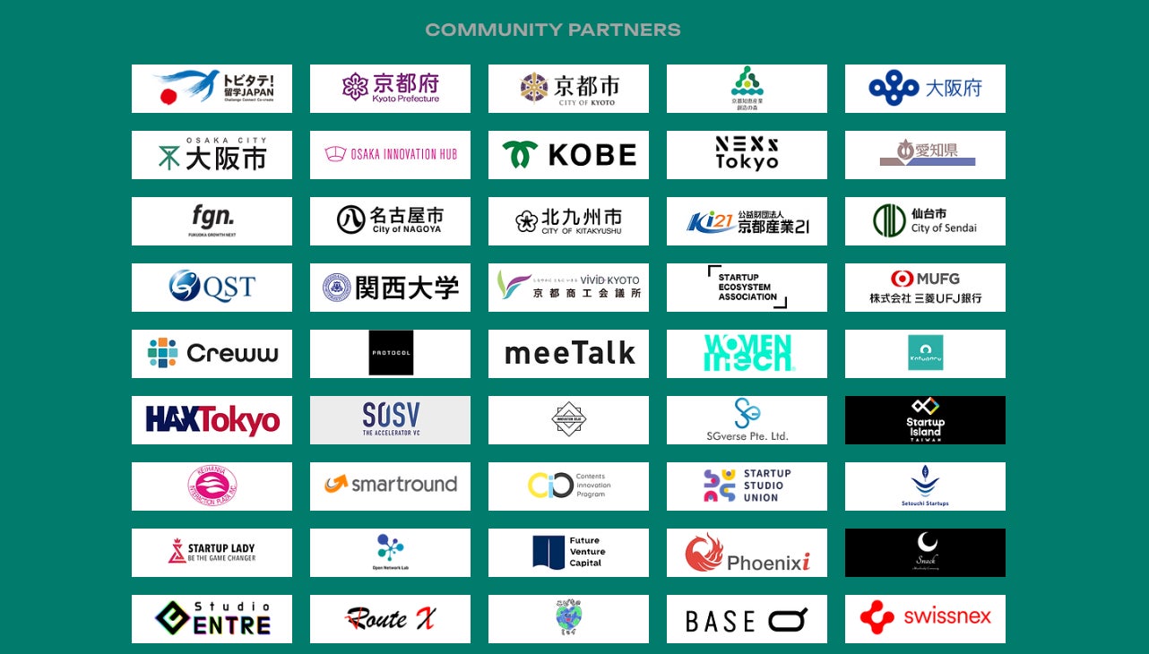 「IVS2023 KYOTO」のコミュニティパートナーには、文部科学省 「トビタテ!留学JAPAN」様や一般社団法人スタートアップエコシステム協会様といった総勢150を超える団体に参画いただいています。