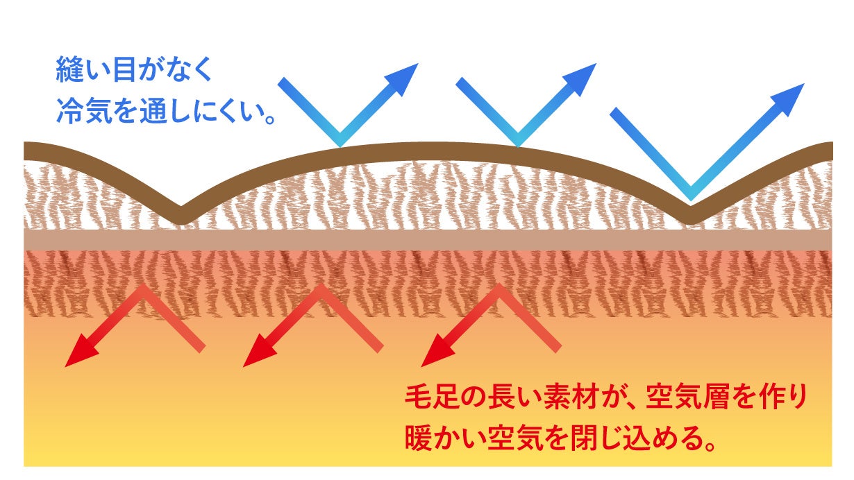 毛先の長い素材が、空気層を作り閉じ込めるため、着用してすぐ暖かさが実感できます。