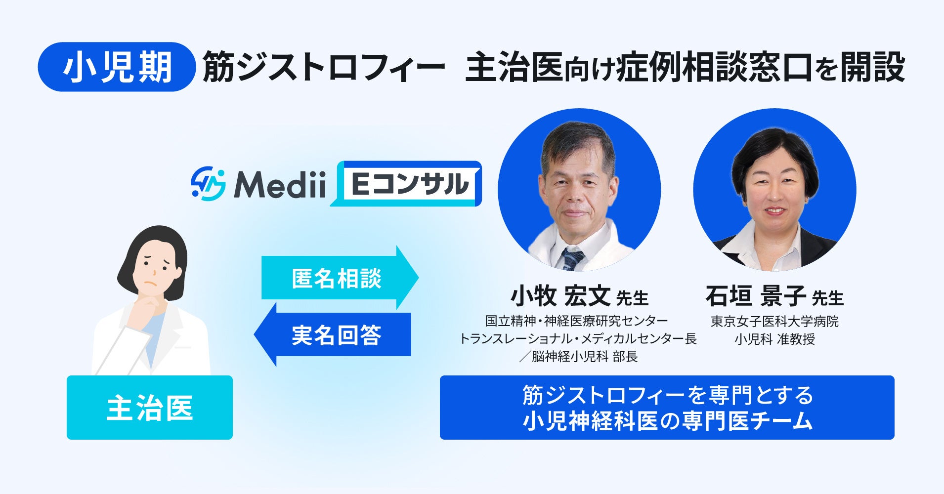 株式会社Medii(本社:東京都新宿区、代表取締役医師:山田裕揮、以下Medii)は、医師向け専門医相談サービス「Medii Eコンサル」において、小児神経専門医チームと連携し、小児期の筋ジストロフィーを対象とした症例相談窓口を開設しました。