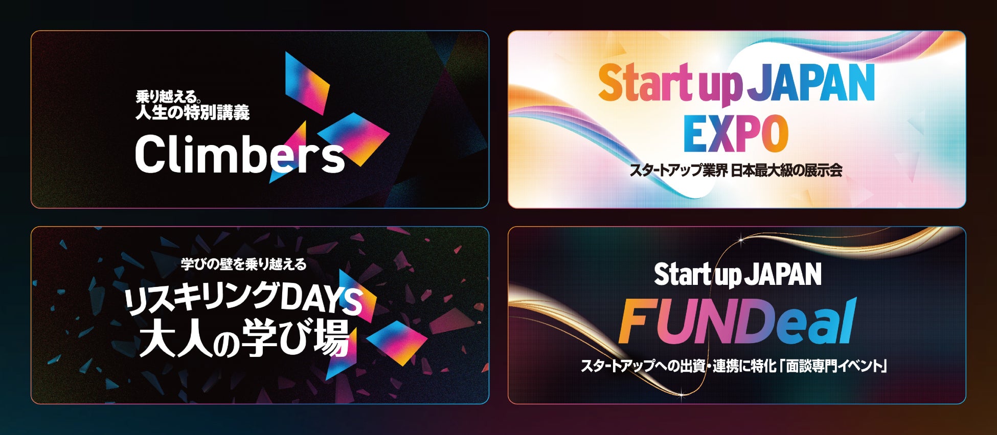 「Climbers」は、コロナ禍に「日本のビジネスパーソンを元気にしたい」という思いから立ち上がった新たなビジネスカンファレンスです。その後「Climbers」から派生する形でスタートアップ業界 日本最大級の展示会「Startup JAPAN」、大人の学び場「リスキリング DAYS 大人の学び場」を立ち上げました。「乗り越える」を共通テーマにした3本のイベントを「Climbers Series」と称し、東京ビッグサイトで同時開催いたします。本イベントでは、会議形式の参加型カンファレンス、ディスカッションができる交流イベントなど、参加者と出展者、参加者同士が交流できるプログラムを随所に設け、ビジネスマッチングとネットワーキングの機会を創出します。