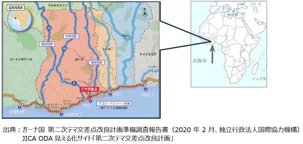 建設位置となるテマ交差点は、西アフリカ海岸都市を結ぶ「ラゴス・アビジャン回廊」とテマ港から内陸部へ通じる「東部回廊」が交差する重要地点です。経済発展に伴う貨物交通量の増大が慢性的な渋滞の要因となっているなか、本高架橋の開通により、円滑な物流網の構築が期待されています。