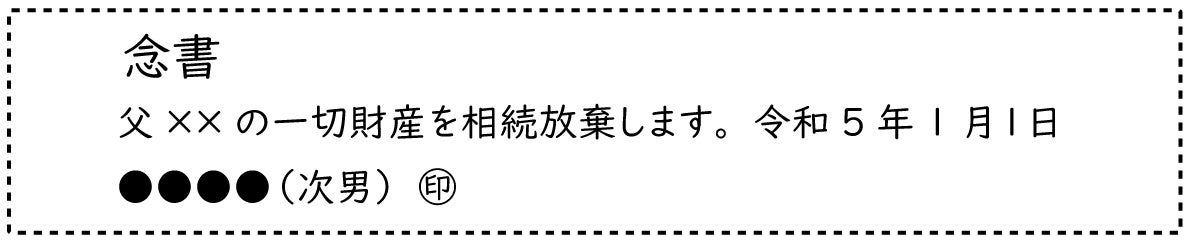 - ①「全財産を長男に相続させる」旨の遺言書を書く