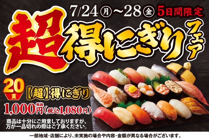前回大変ご好評いただいた、人気企画が再登場!7/24(月)~平日5日間限定!『【超】得にぎりフェア』開催!