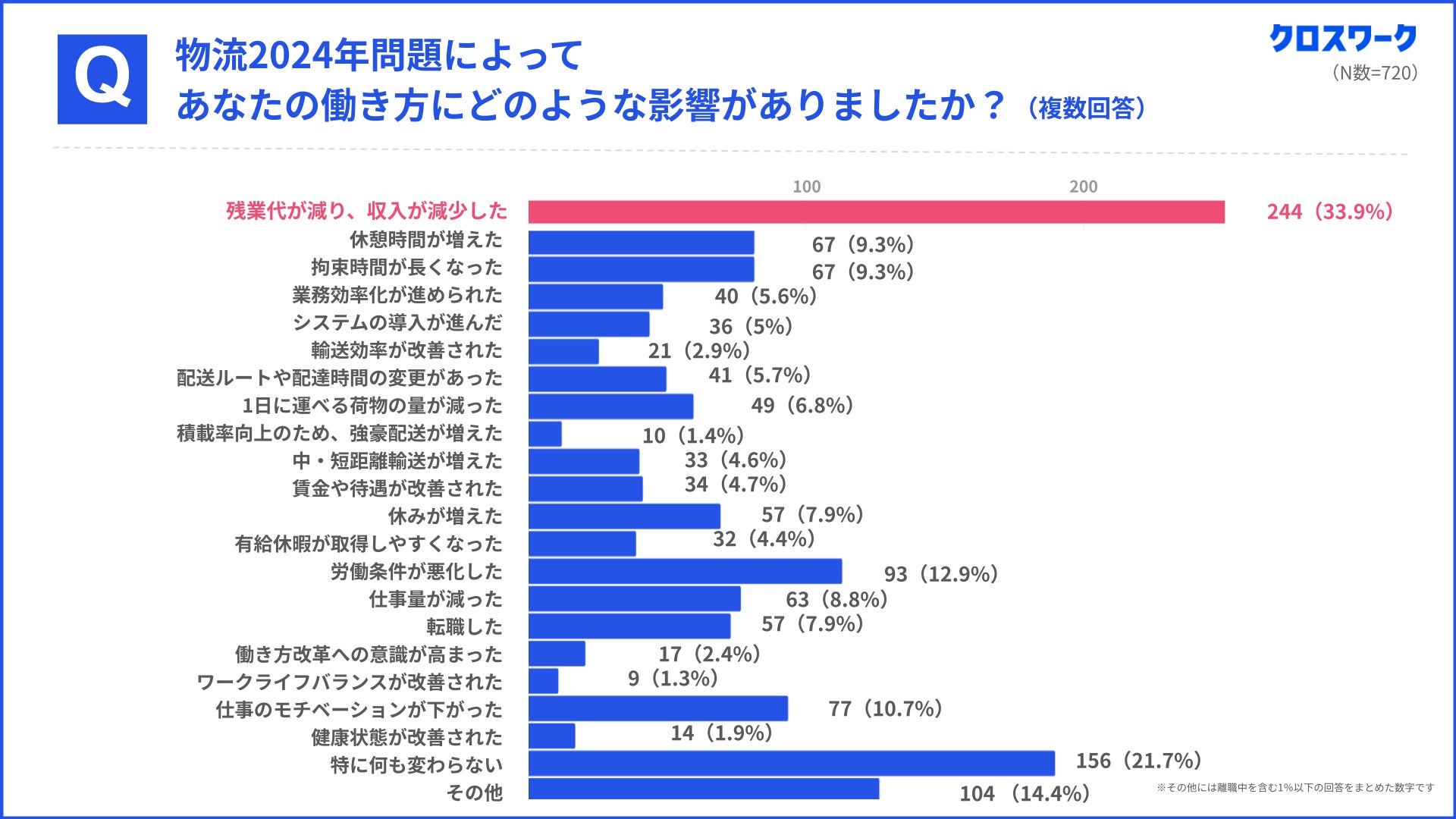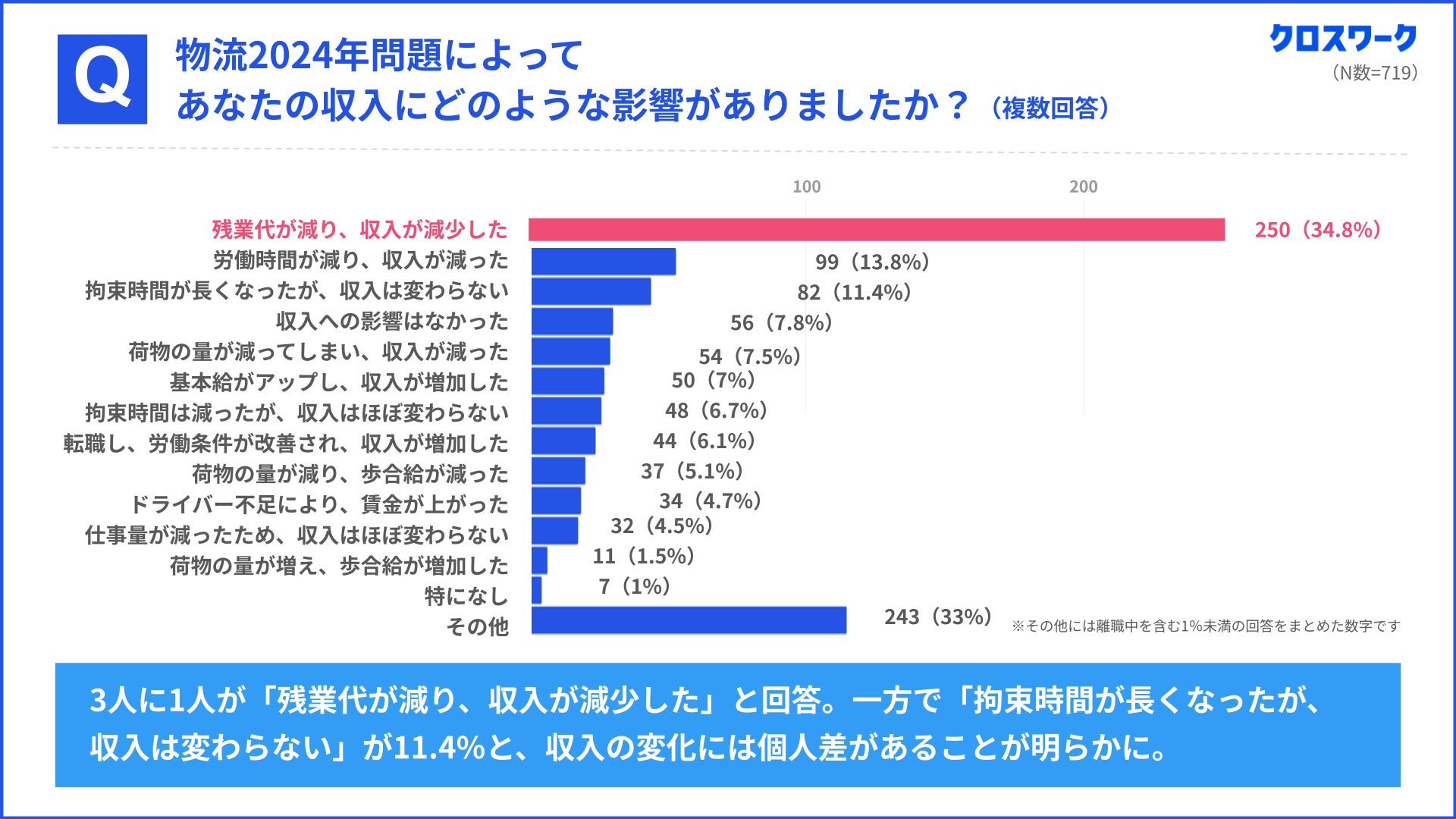 1)2024年問題から1年、ドライバーの34.8%が「収入減」を実感。働き方にも多様な変化が