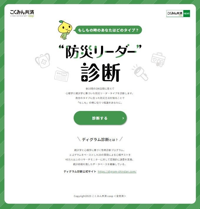 もしも災害が起こった時「自分はどんな行動を取るべきか」を診断できるコンテンツ『防災リーダー診断』を体験いただけます。