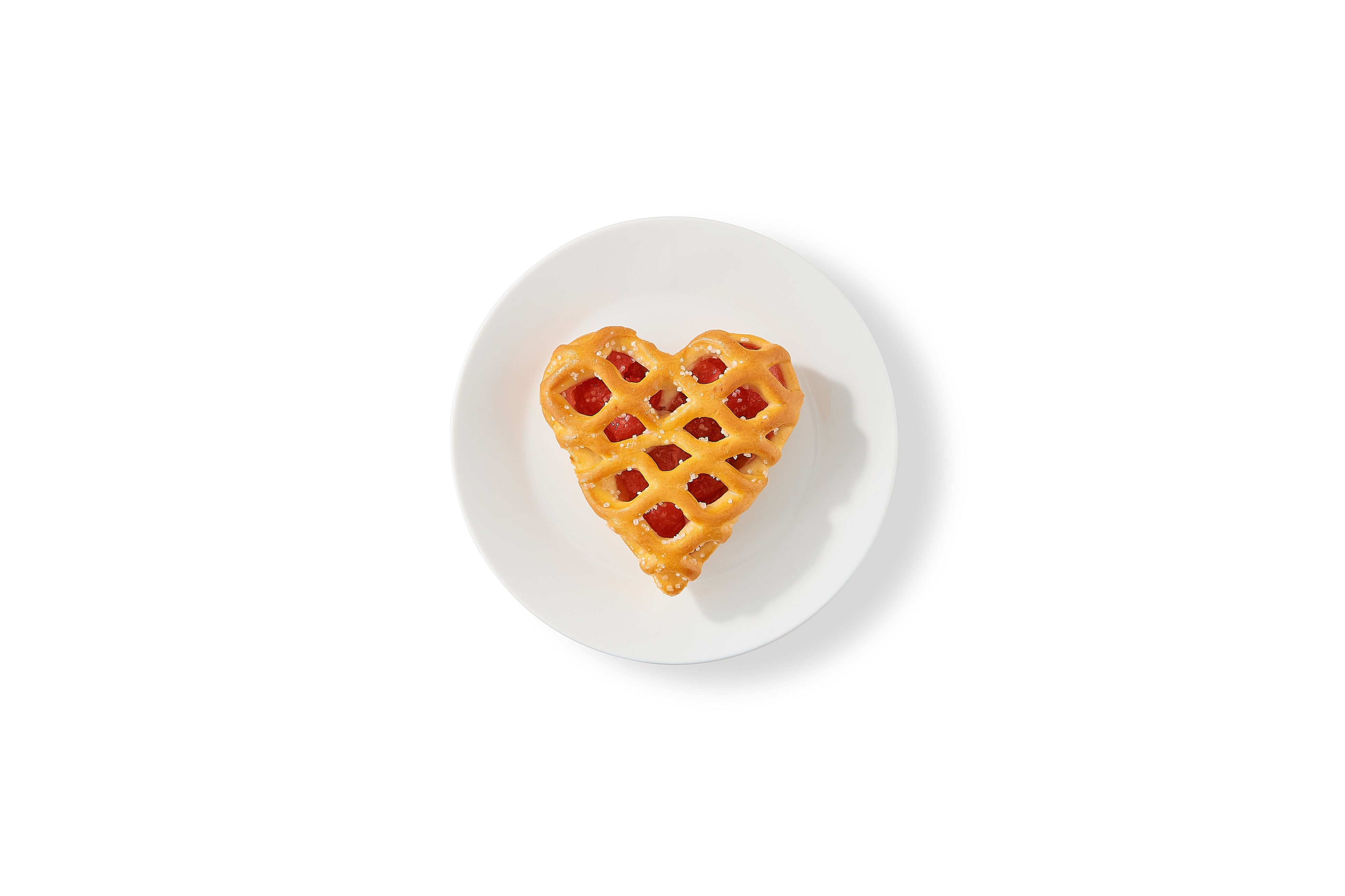 ストロベリーフィリングが入ったかわいいハート型のパイ。