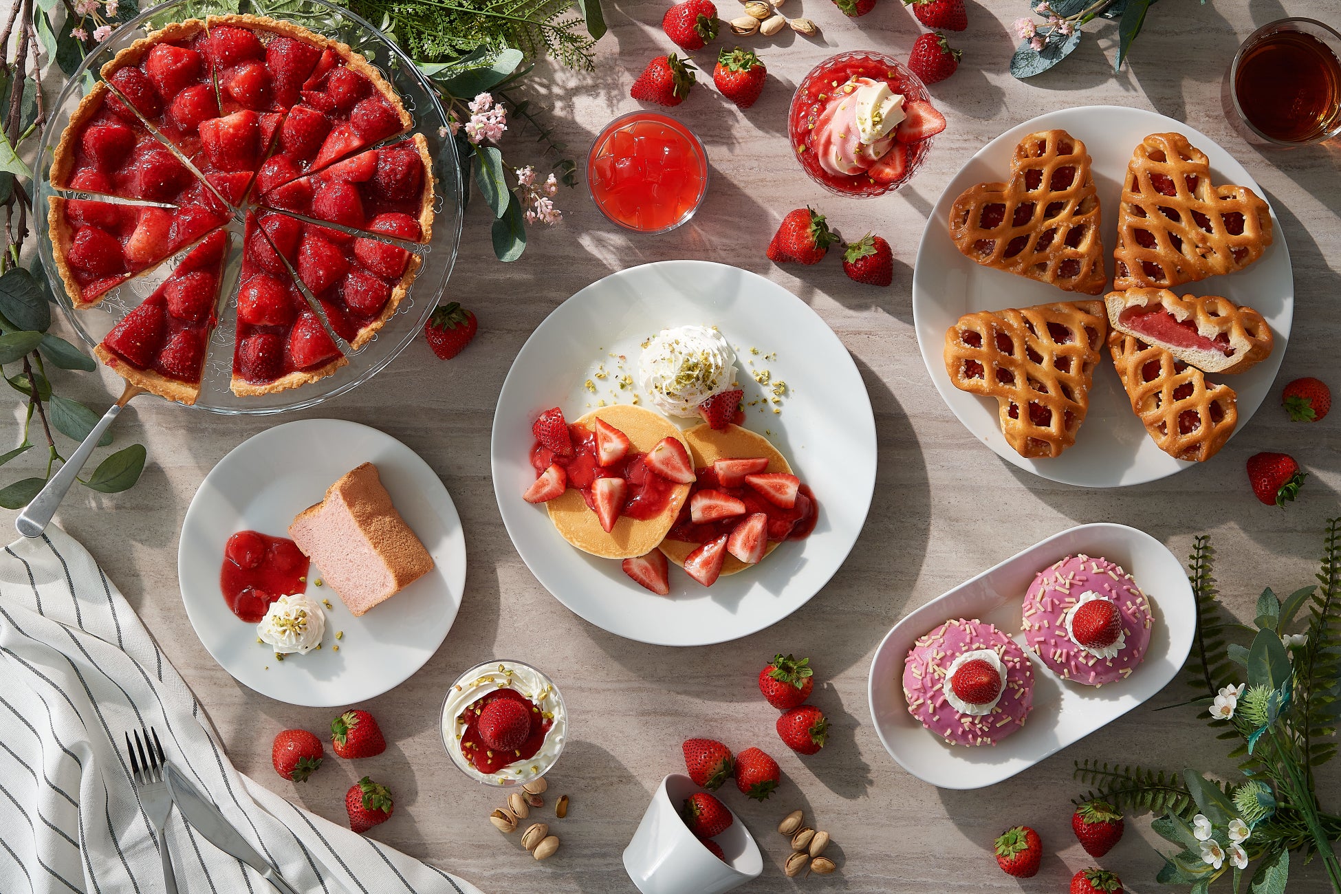 いちごがたっぷりのったストロベリーパンケーキやタルトが登場
