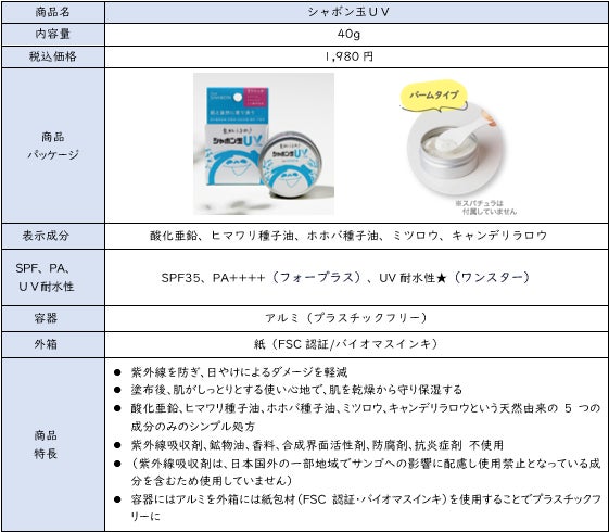 「シャボン玉UV」製品概要