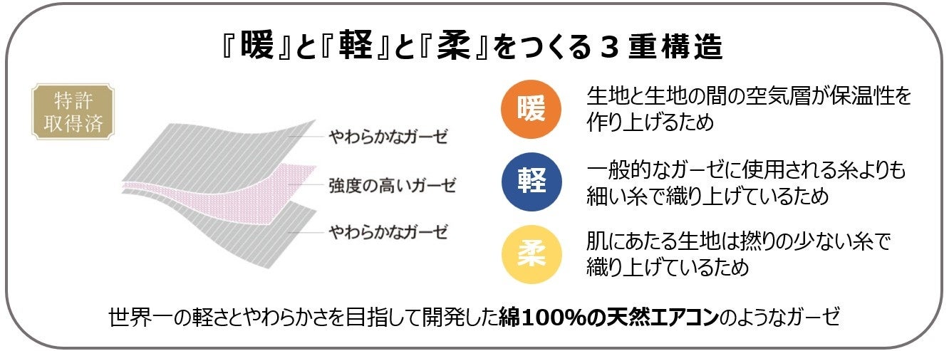 『暖』×『軽』×『柔』の綿100%特許素材「マシュマロガーゼパジャマ」に新作登場!