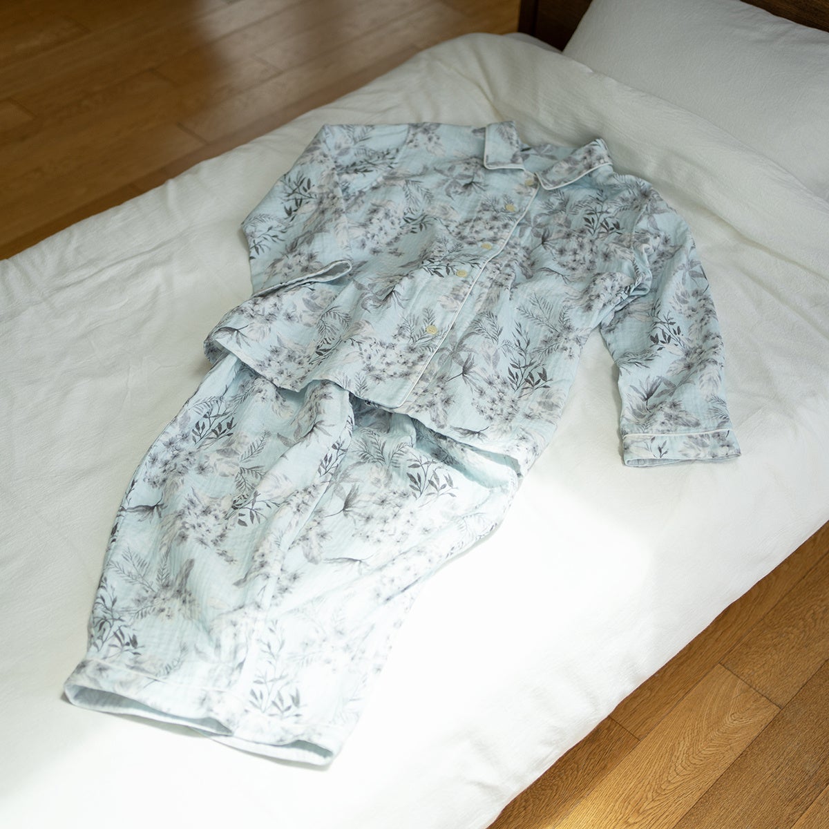 睡眠を改善するため、多くの方法を試みた中で最も効果が表れたのが、まさかのパジャマの着用でした。私が初めてマシュマロガーゼパジャマを身に着けて眠った翌朝の衝撃は、今でもハッキリと覚えています。これまで様々なパジャマに触れてきましたが、圧倒的な肌触りの良さと、生地が薄手で軽いので動きやすくて身体への負担の少ないこと、就寝中の身体が朝までずっと快適に保たれる吸水性と吸放湿性、保温性の全てが備わっており、あまりの心地よさに感動!そこからマシュマロガーゼパジャマの虜になりました。