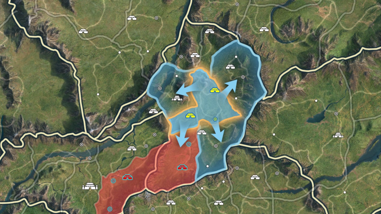 シンプルな設定に見えるが、エリア制限の要因が排除されることでプレイヤーがより能動的に動き、地略の強みを生かし、勢力網を広げることができ、地略戦略の重要性が際立つ。こうして連結は戦場を左右するカギとなり、ゲームに無数の可能性をもたらすのだ。
