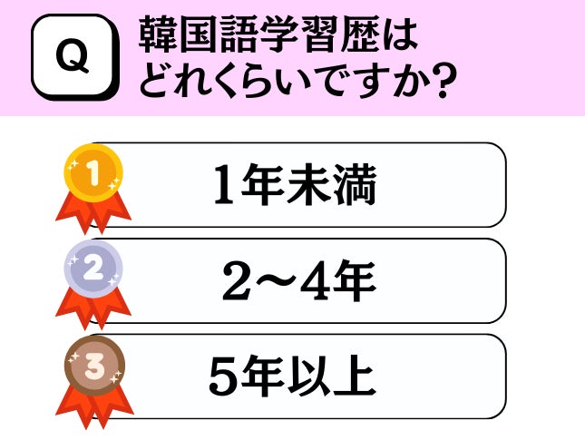 多くの方が韓国語を始めたばかりであり、学習の初期段階にいることがわかりました。