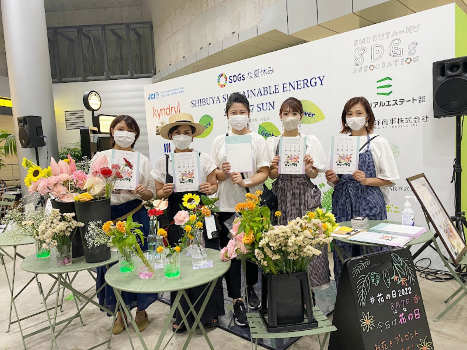 華やかなブースで会場を彩って頂いたのは、株式会社RIN提供「花救い」。まだ美しいのにも関わらず廃棄されてしまう花「ロスフラワー」に新たな命を吹き込む活動をしているフラワーサイクリストのブースです。