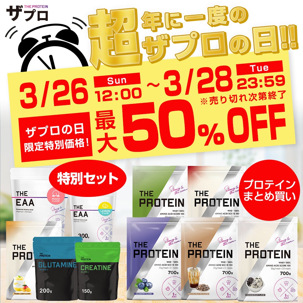 【年に1度のビッグセール“超ザプロの日”】THE PROTEINが、最大50%OFF 3/26より、3日間限定で開催~セール連動プレゼント企画も開催中~