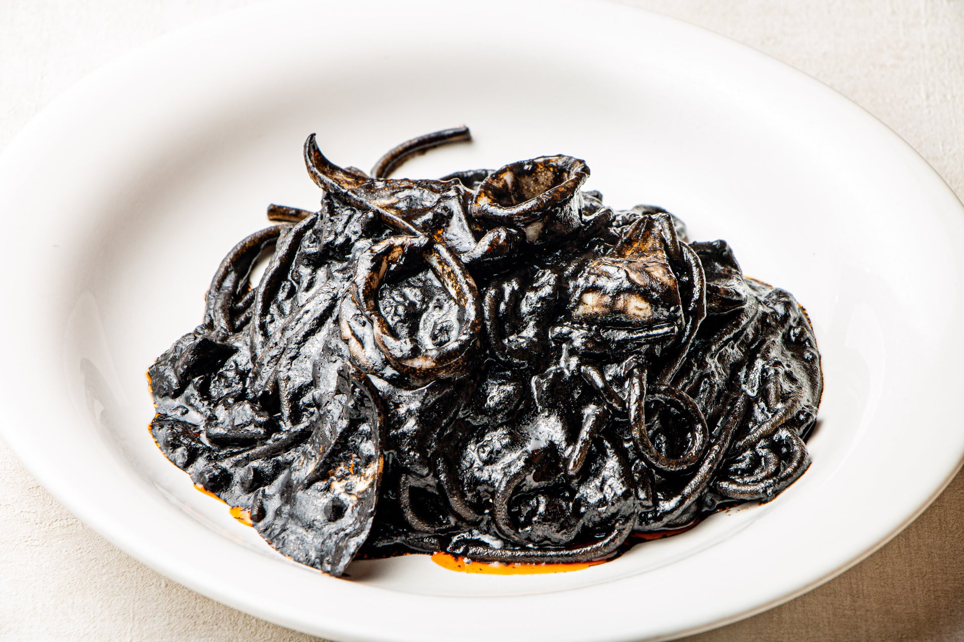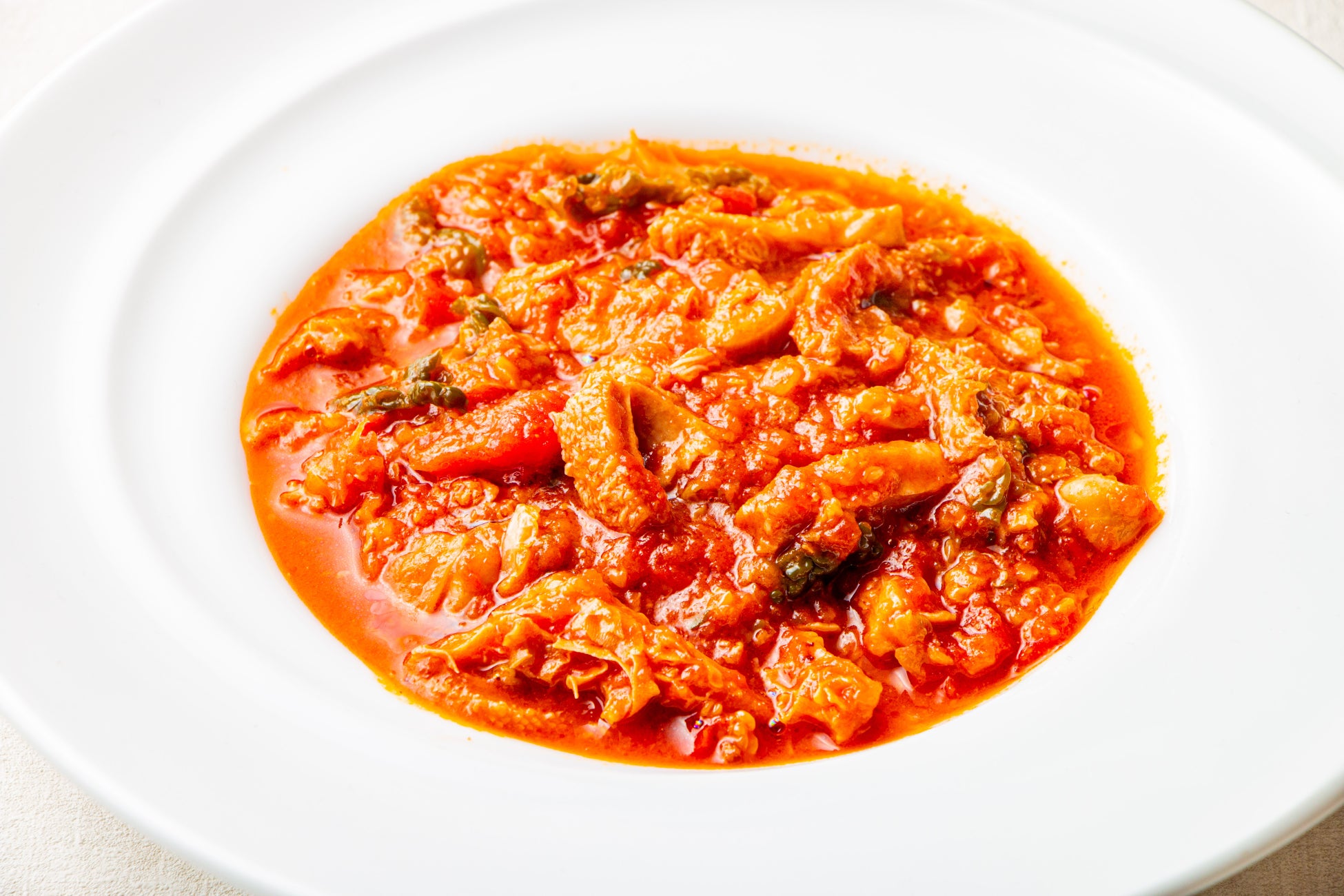 タコとンドゥイヤの辛口トマト煮込みスパゲッティ