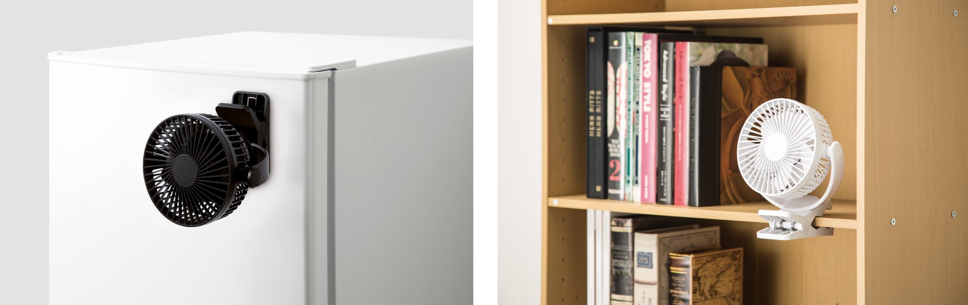 今年は、新色のブラックが加わりました。クリップファンは、卓上据え置き、マグネット利用も可能な3way仕様。充電式のため、様々なシーンで活躍します。上下左右360度に向きを変えられ、風量3段階切り替えが可能。機能性も充分ながら、1990円と大変お買い求めやすい価格です。