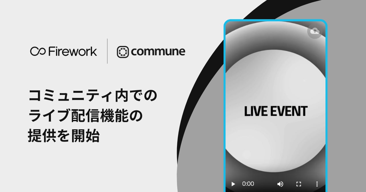 Firework Japan株式会社は、コミュニティサクセスプラットフォーム「Commune(コミューン)」とカスタマーサクセスマネジメントツール「SuccessHub(サクセスハブ)」を提供するコミューン株式会社と機能連携し、Communeを活用するコミュニティ内でのライブ配信機能の提供を開始したことをお知らせします。