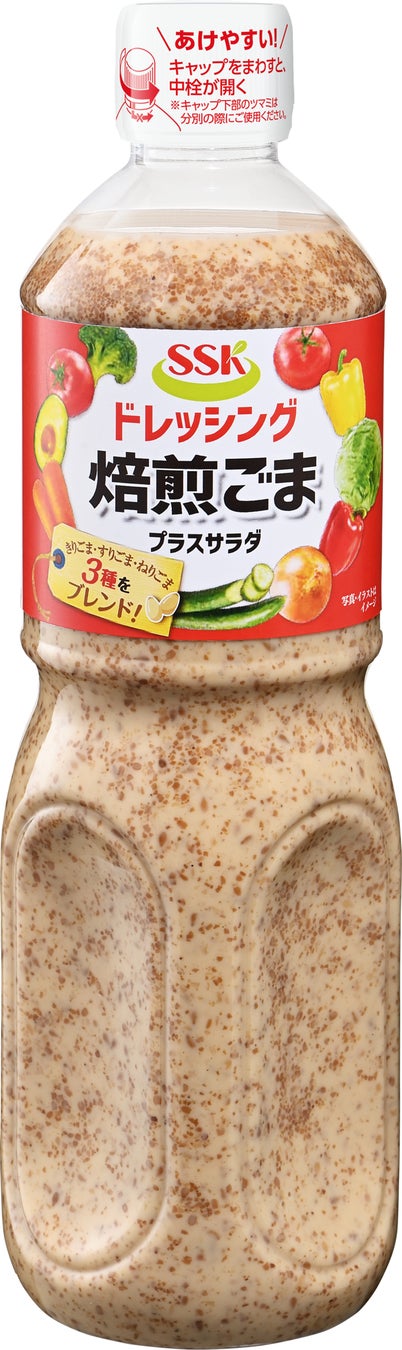 新型コロナウイルスの影響や相次ぐ食品の値上げにより、出来るだけまとめ買いをしたいというご要望が増えてきております。「SSKドレッシング プラスサラダ1L」は、約70食分とたっぷりご使用いただける特大容量サイズです(1食を15gで換算)。サラダだけでなく、温野菜や鍋のつけだれ、しゃぶしゃぶのたれなどでお楽しみください。