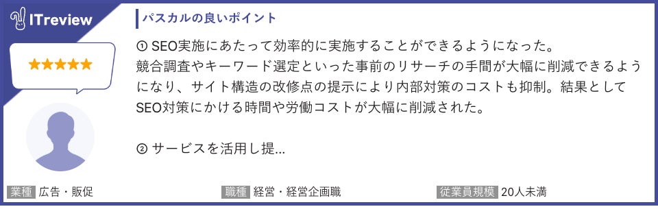 ITreviewにて、実際にパスカルをご利用いただいているお客様よりたくさんのお声をいただいております。