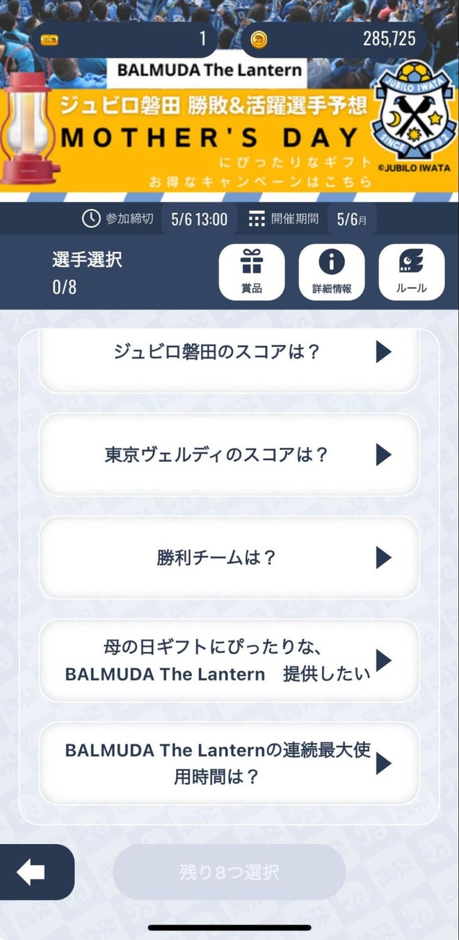 試合展開/活躍選手を予想して、母の日のプレゼントにも最適な「BALMUDA The Lantern」やサイン色紙をゲット!