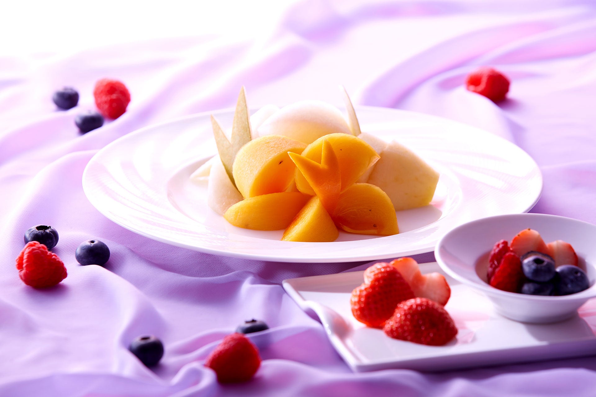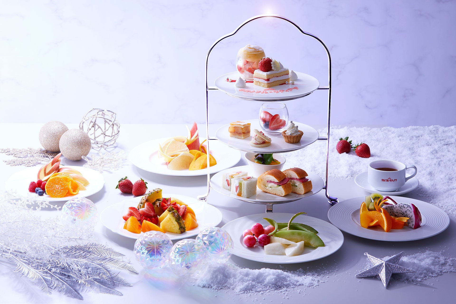 カットフルーツ食べ放題とアフタヌーンティーセット(お一人様おひとつ)を120分楽しめる「タカノフルーツティアラ」。