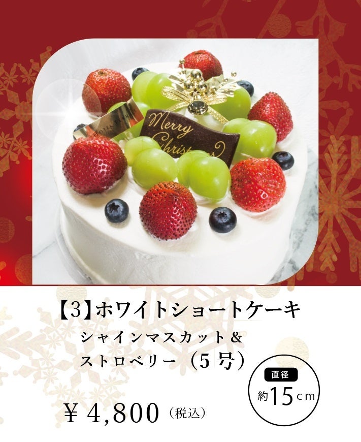 【03】ホワイトショートケーキ シャインマスカット&ストロベリー 5号(15cm-3〜5⼈前) ¥4,800