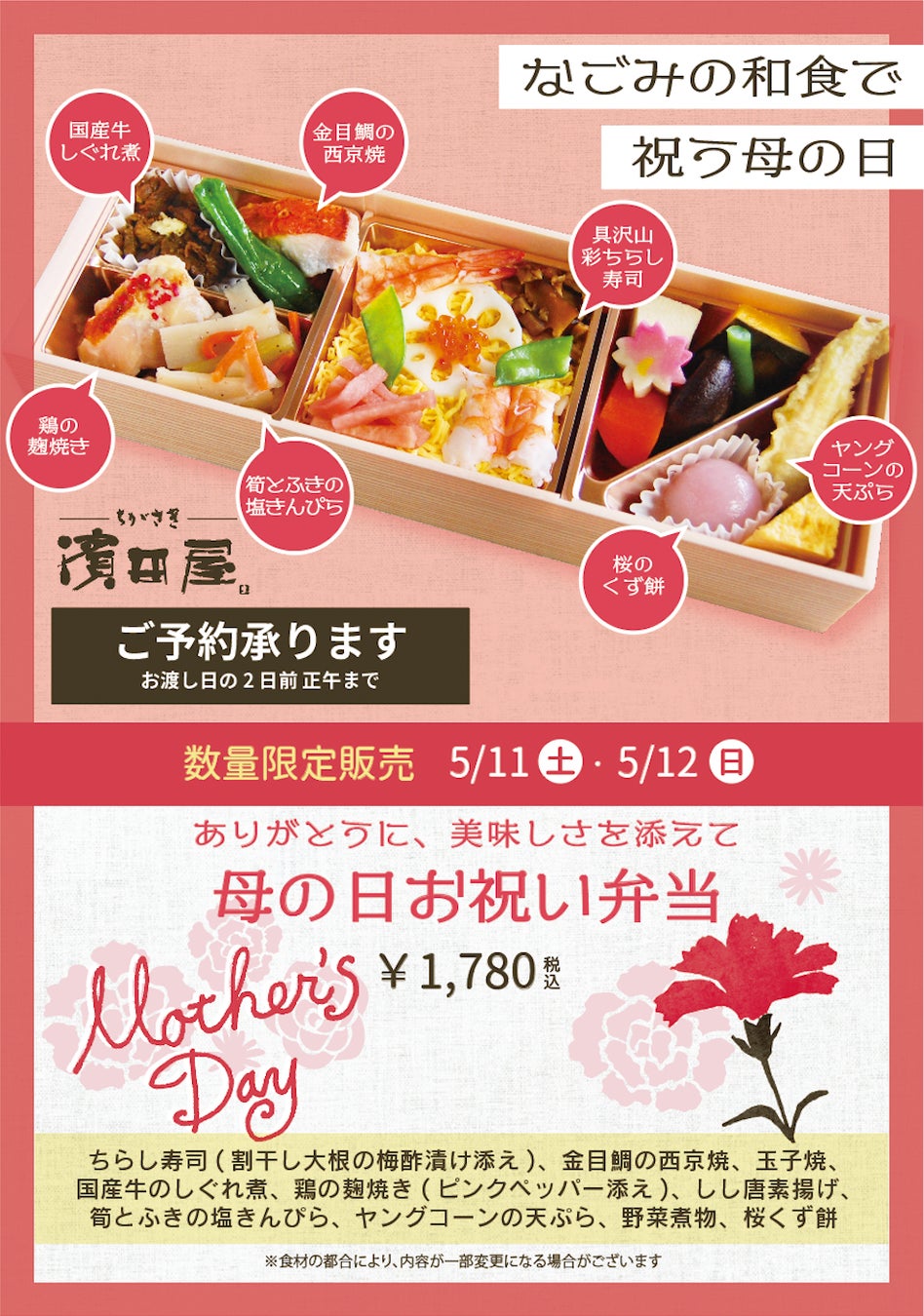 <和彩弁当>ありがとうに、おいしさを添えて。「母の日お祝い弁当」を5月11日(土)より2日間限定で販売!老舗仕出し料理屋【ちがさき濱田屋】