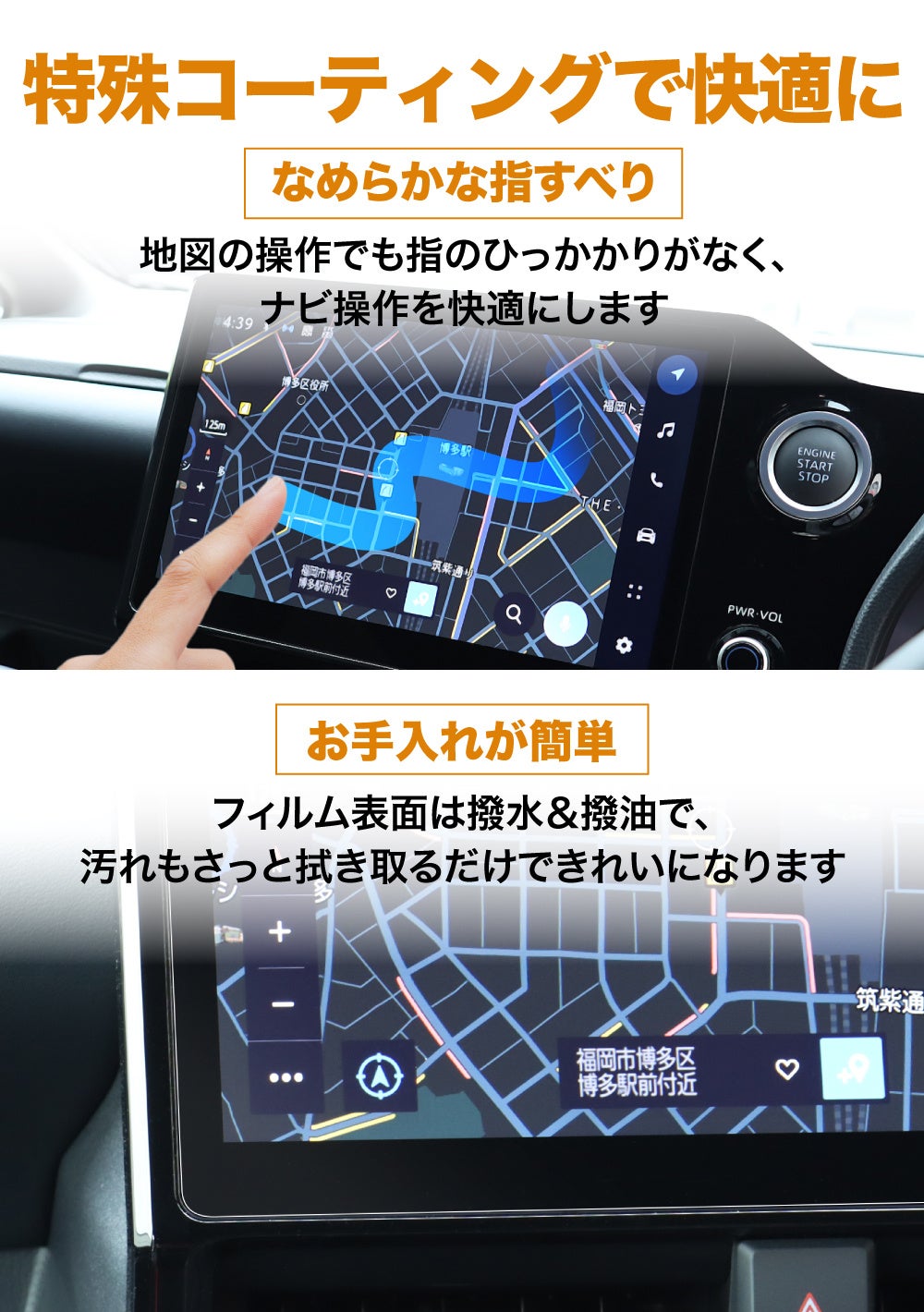 特殊コーティングにより、地図の操作でも指のひっかかりが少なく、ナビ操作を快適にします。
