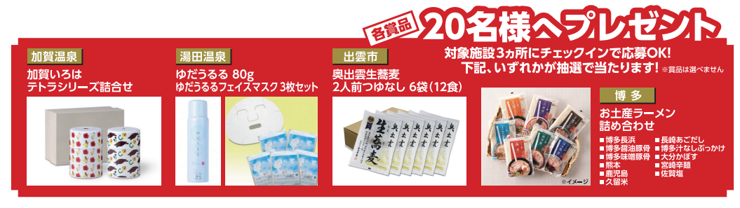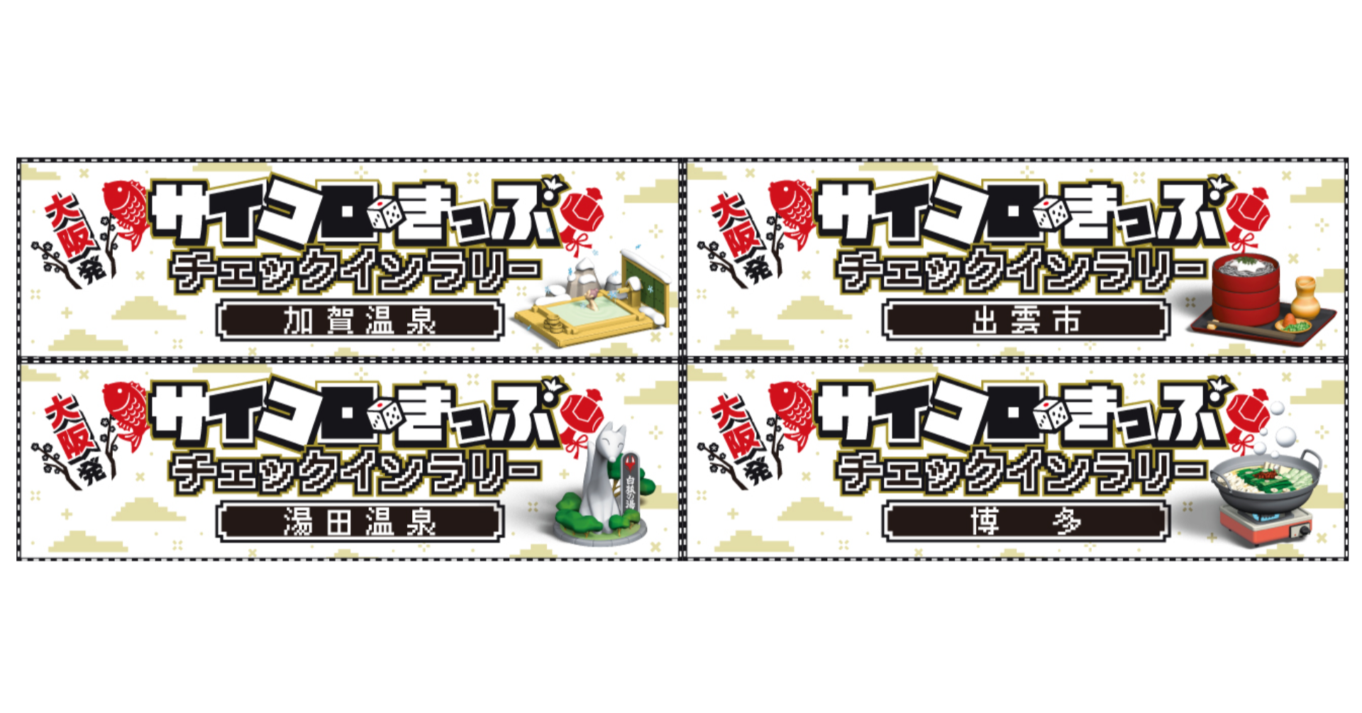 第三弾となる今回は、「大阪発サイコロきっぷ」発売に合わせて、目的地に応じたチェックインスポットを巡るデジタルスタンプラリーを開催します。参加者は、それぞれの目的地に用意された5つのチェックインスポットのうち、3つ以上のスタンプを獲得すると豪華賞品の抽選に応募できます。また、チェックインラリーページから旅先で利用できるクーポンを獲得できます。