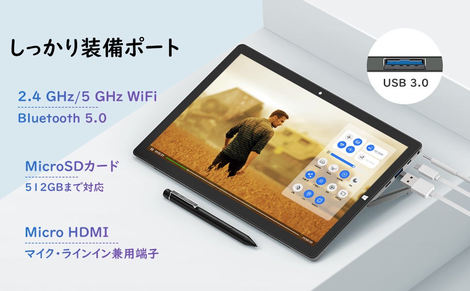 2.4 GHz/5 GHz WiFiとBluetooth 5.0に対応、安定したネットワーク通信と高速転送が可能になっております。3000mAhバッテリー内蔵で最大7時間駆動できて、屋外での使用や移動の際にも便利で安心です。