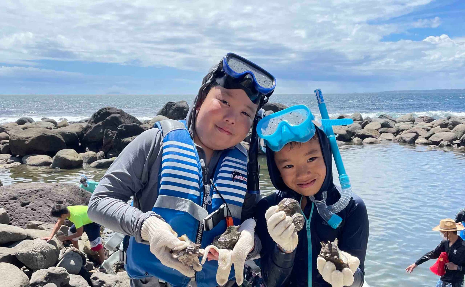 さざえのつかみ捕り大会:磯の恵みをその手でキャッチ!捕ったさざえはその場で焼いて食べられます。