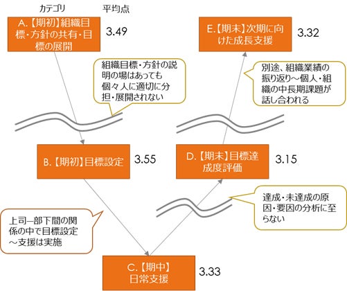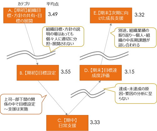 ・組織と個のつながりが十分に担保されないまま、上司と部下の個別の活動のサイクルだけが回り始めることで、個人目標の達成度の背景にある要因の分析が十分に進まないのではないかと推測されます。