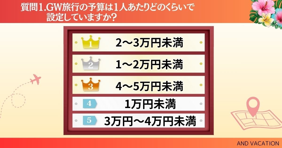 質問1.GW旅行の予算は1人あたりどのくらいで設定していますか?