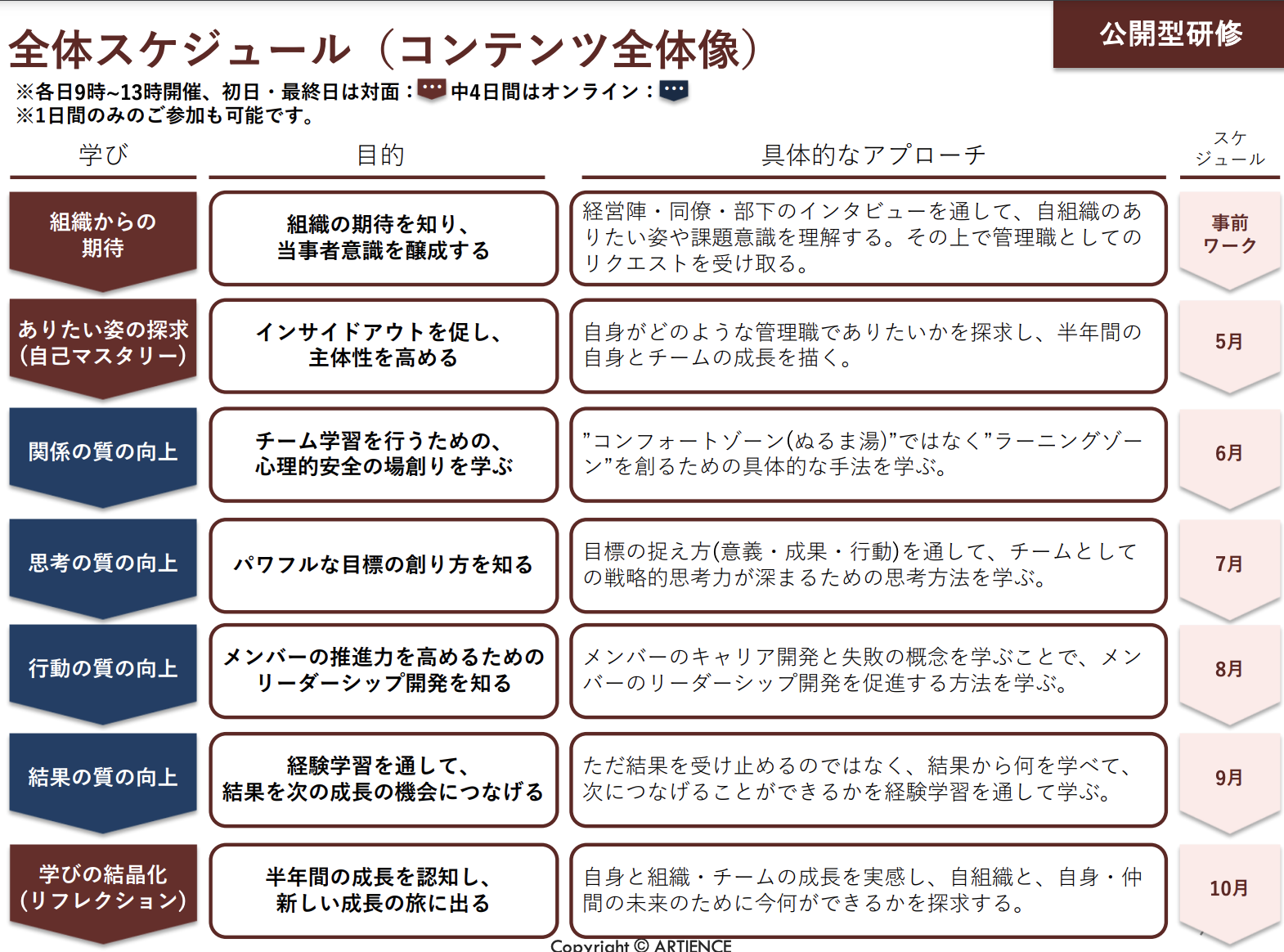 リーダーシップ開発・組織開発の研修を提供しているアーティエンス株式会社が「困難を乗り越えるチームを創る」管理職研修の2022年度公開講座日程が決定しました。