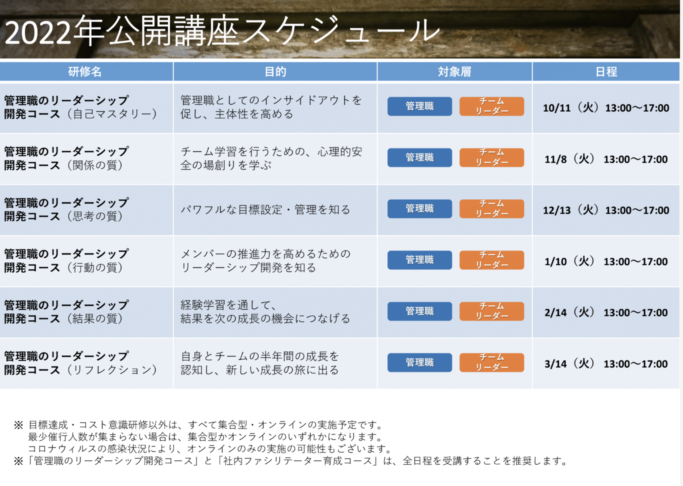 より多くの企業・管理職の方々に提供するために、公開型でも開催します。