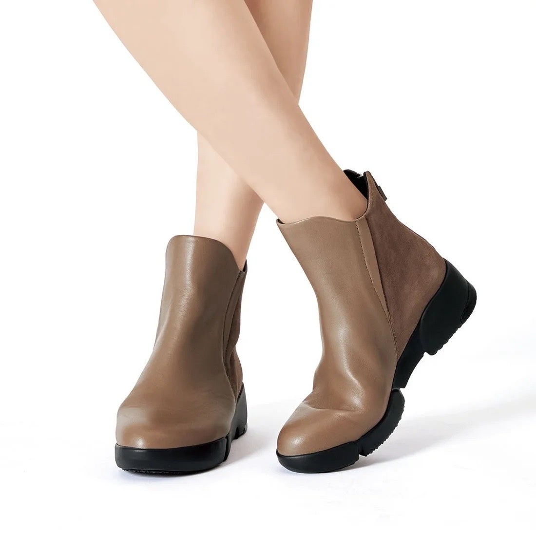 「ソフトレザーミドルブーツ」は、“やわらかなレザーとストレッチ素材で足にやさしいブーツ”として昨年ご好評いただいた「サイドストレッチソフトレザーブーツ」を踏襲した新しいモデルで、より使いやすいデザインで、外反母趾などの足にお悩みがある方でもおしゃれに履きやすいブーツを提案したい、との思いから開発しました。