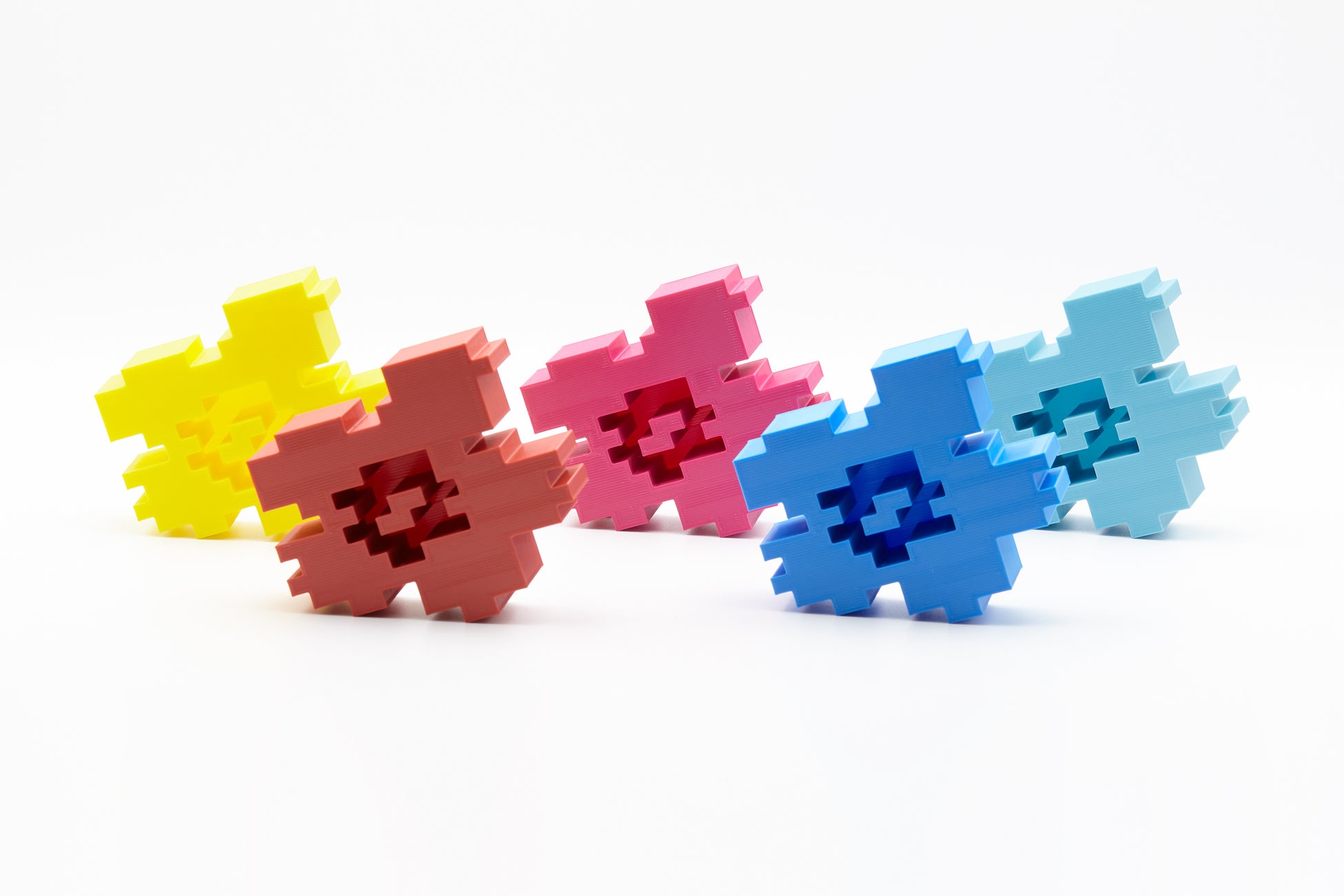 今回のテーマであるFlowerをモチーフにした3Dプリンターで製作されたオリジナルオブジェや、シブヤピクセルアートのオリジナルグッズを展示いたします。(商品はECサイトからのみのご購入となります。)