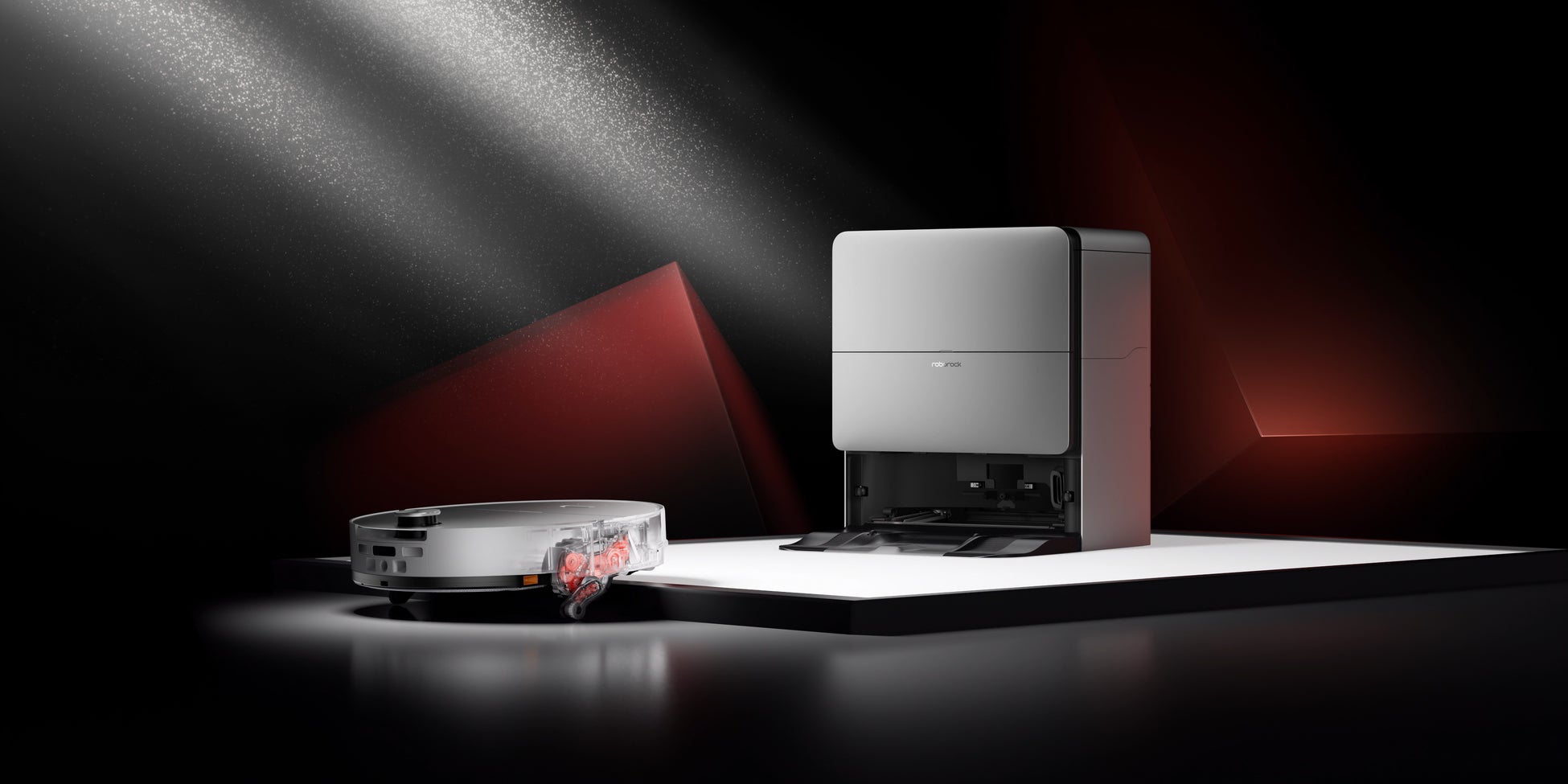 最新多機能充電ドック「RockDock®」は、100°C※13の高温水洗浄により油汚れを分解し、99.99%※14の除菌を実現します。その後55°C※15の温風でモップ、ドック底部、ダスト経路全体を乾燥させ、カビや臭いの発生を抑制します。さらに、吸引モードでモップだけがドックに残されている時には、モップを個別洗浄する独立モップ洗浄機能、汚れを検知して再洗浄・再清掃を行うスマート汚れ検知機能を搭載。