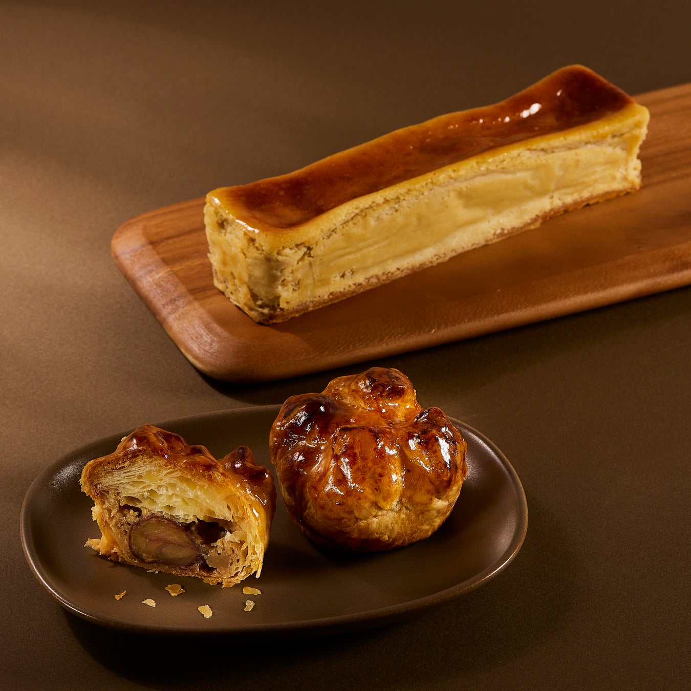 クッキー生地の上にまるごとの栗をぎっしりと並べ、北海道産のクリームチーズと茨城県産「利平栗」のペーストを使用したチーズケーキを流し込み、じっくりと焼き上げました。