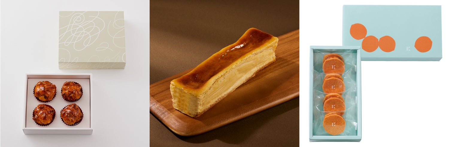 内容:マロンのプレミアムチーズケーキ、マロンパイ4個入、くるみのキャラメルサンド4個入×各1