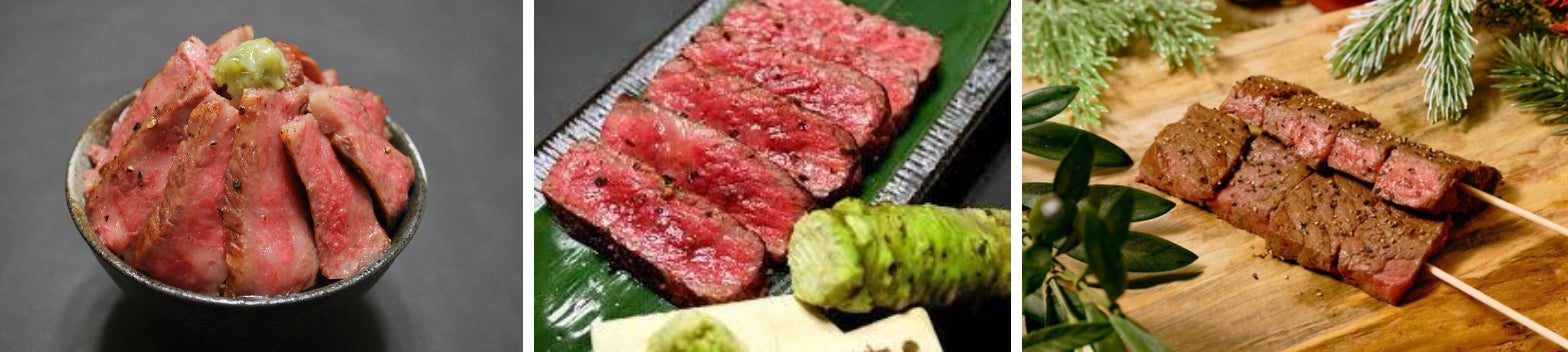 提供内容:和牛大トロステーキ丼、和牛赤身ステーキ、和牛串 ほか