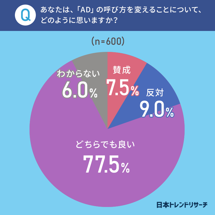 【ADの呼称変更】「賛成」7.5%「反対」9.0%、77.5%は「どちらでも良い」