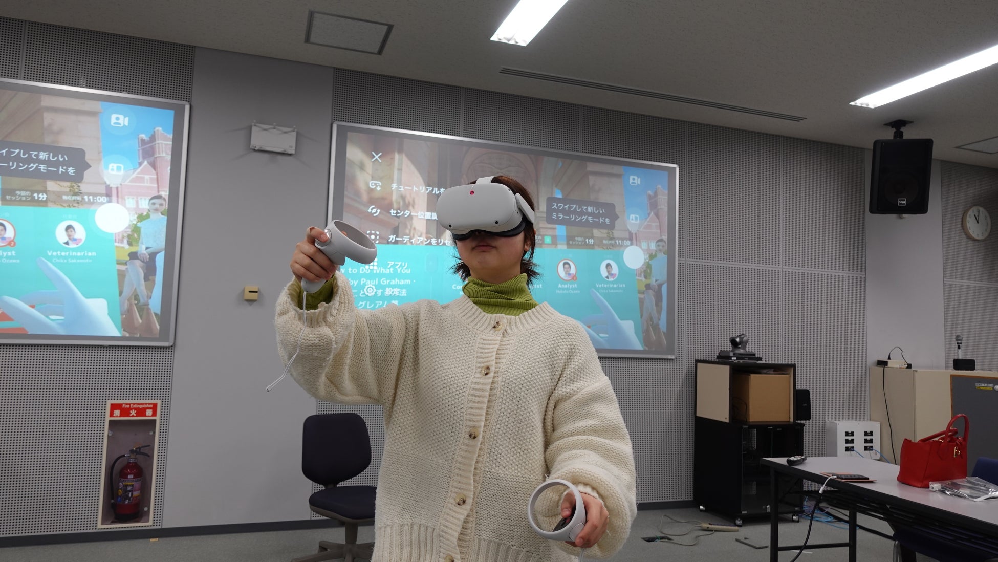 そこで、レッスンに参加しなかった学生にもVRの素晴らしさを体験してもらおうとVR英会話の体験会を開催しました。